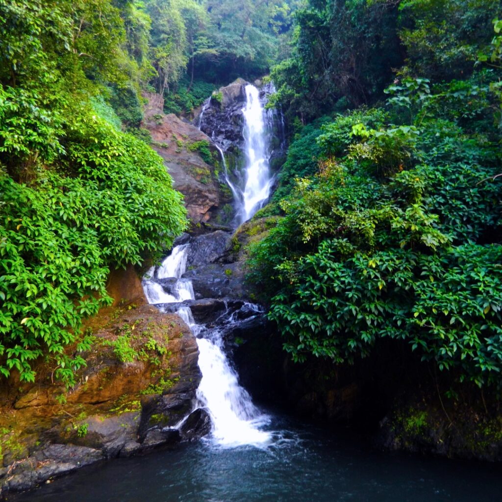 Vibhuti Falls is a stunning multi-tiered waterfall nestled amidst dense forests near Yana, Karnataka. Its crystal-clear waters cascade over rocky cliffs, creating a serene and refreshing natural pool below. A hidden gem of the Western Ghats, it’s a must-visit spot for nature lovers and adventure seekers.